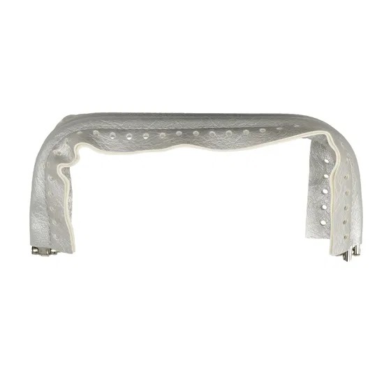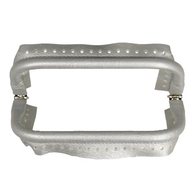 Questa elegante chiusura a molla per borsa in finta pelle rappresenta la scelta ideale per arricchire le tue creazioni fai da te con un tocco di raffinatezza e praticità. Realizzata per adattarsi perfettamente a pochette e clutch bag lavorate all'uncinetto, questo componente si distingue per la sua struttura tubolare in alluminio, resistente e leggera, con un diametro di circa 1 cm. Misurando 20 cm in lunghezza e 9 cm in altezza, la chiusura è dotata di fori che facilitano notevolmente l'applicazione, garantendo un processo di assemblaggio semplice e pulito tra i lembi della borsa. La finitura in PU color argento non solo esalta l'estetica della tua creazione, ma offre anche una soluzione funzionale e duratura per le chiusure a scatto.