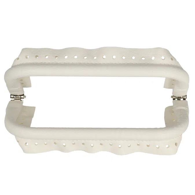 Misurando 20 cm in lunghezza e 9 cm in altezza, la chiusura è dotata di fori che facilitano notevolmente l'applicazione, garantendo un processo di assemblaggio semplice e pulito tra i lembi della borsa.