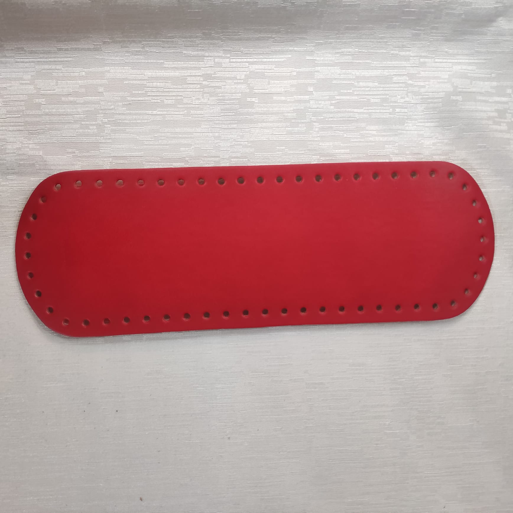 Fondo ecopelle ovale. Lungo cm30 Largo cm 10. Fori mm3 ca